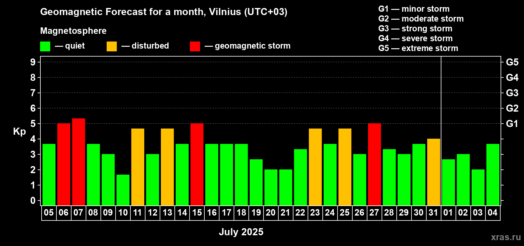 Geomagnetic storm forecast in Vilnius for Jul 05, 2025