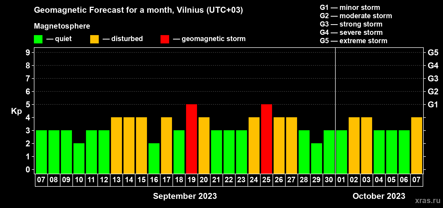 Geomagnetic storm forecast in Vilnius for Sep 07, 2023