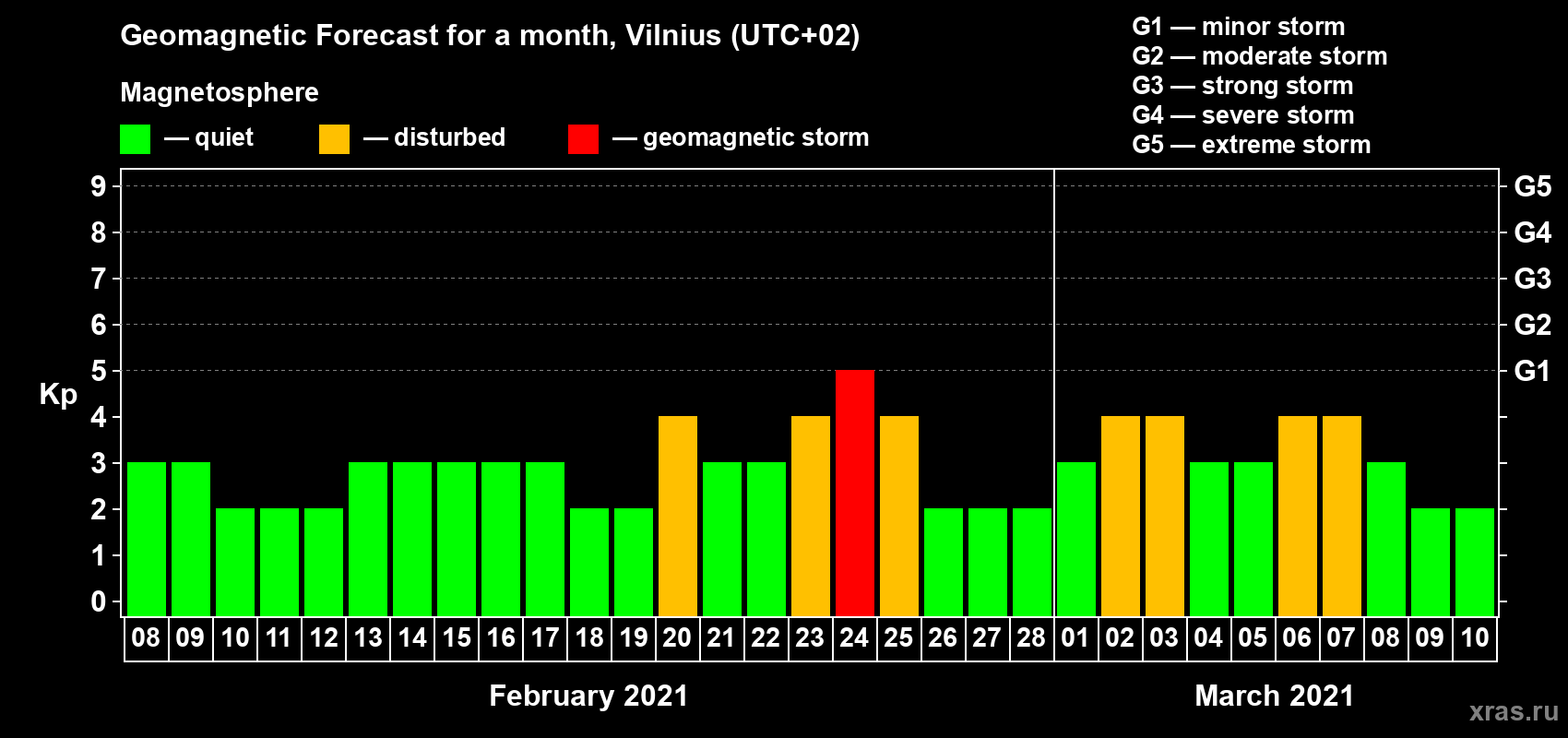 Geomagnetic storm forecast in Vilnius for Feb 08, 2021