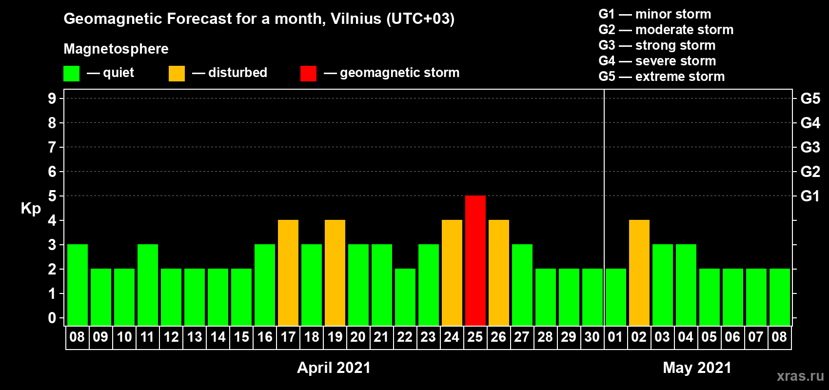 Geomagnetic storm forecast in Vilnius for Apr 08, 2021