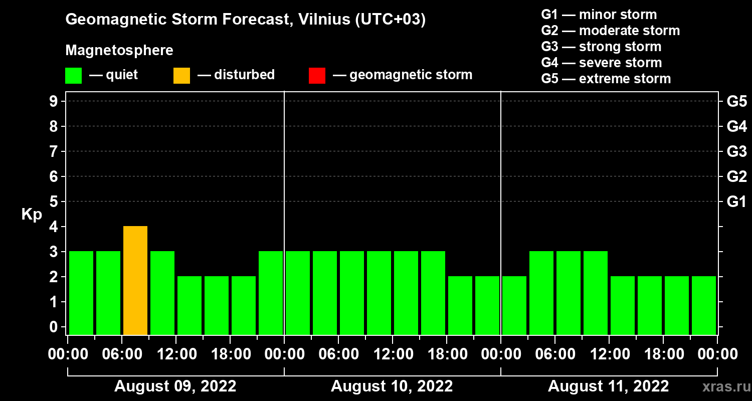 Geomagnetic storm forecast in Vilnius for Aug 09, 2022
