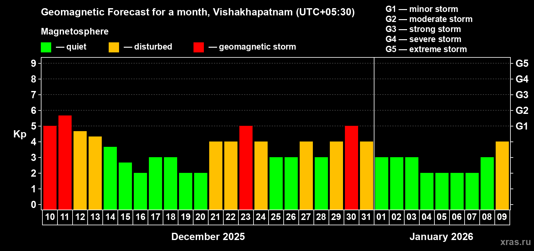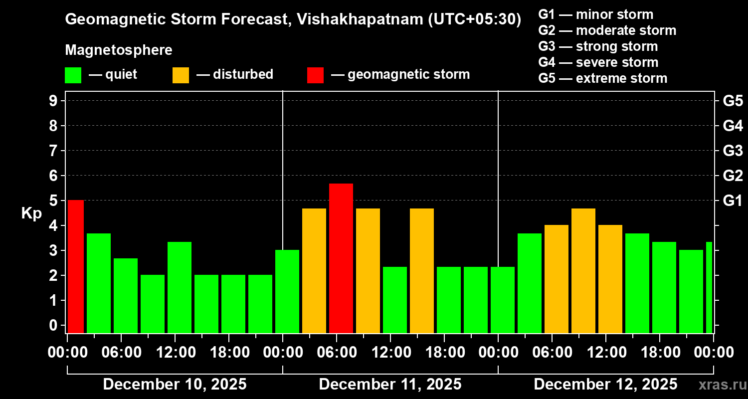 Geomagnetic storm forecast in Vishakhapatnam for Dec 10, 2025