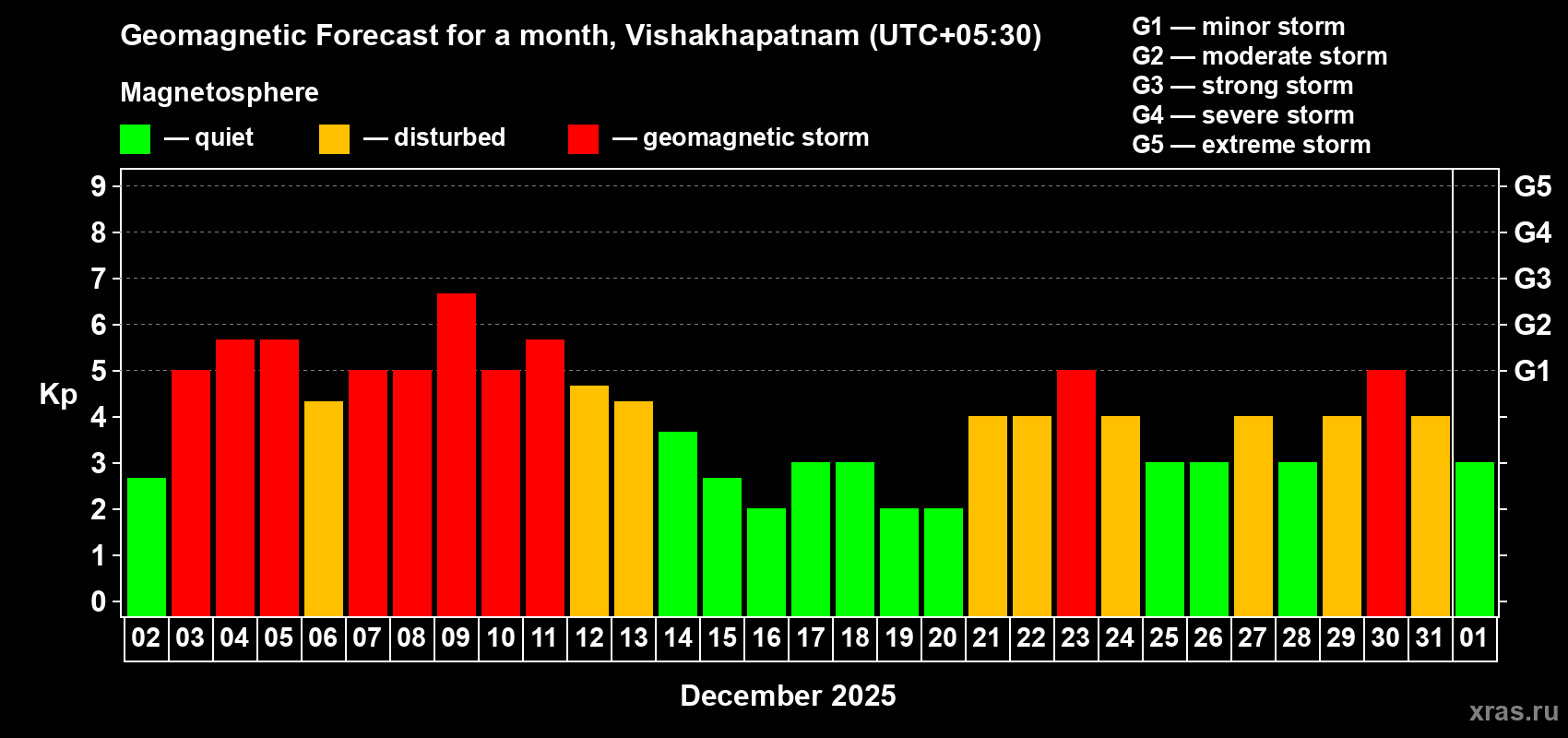 Geomagnetic storm forecast in Vishakhapatnam for Dec 02, 2025