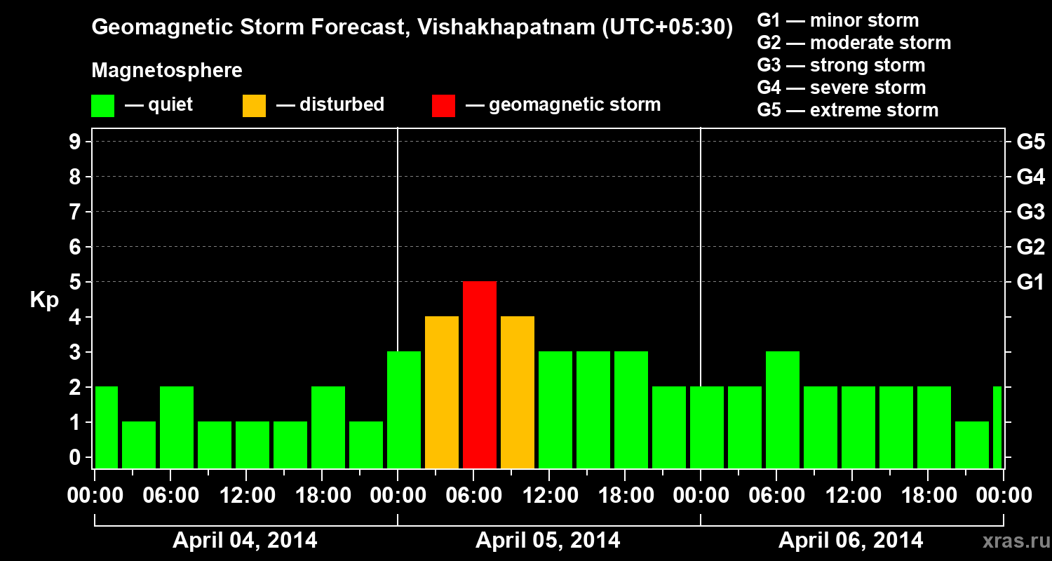 Geomagnetic storm forecast in Vishakhapatnam for Apr 04, 2014
