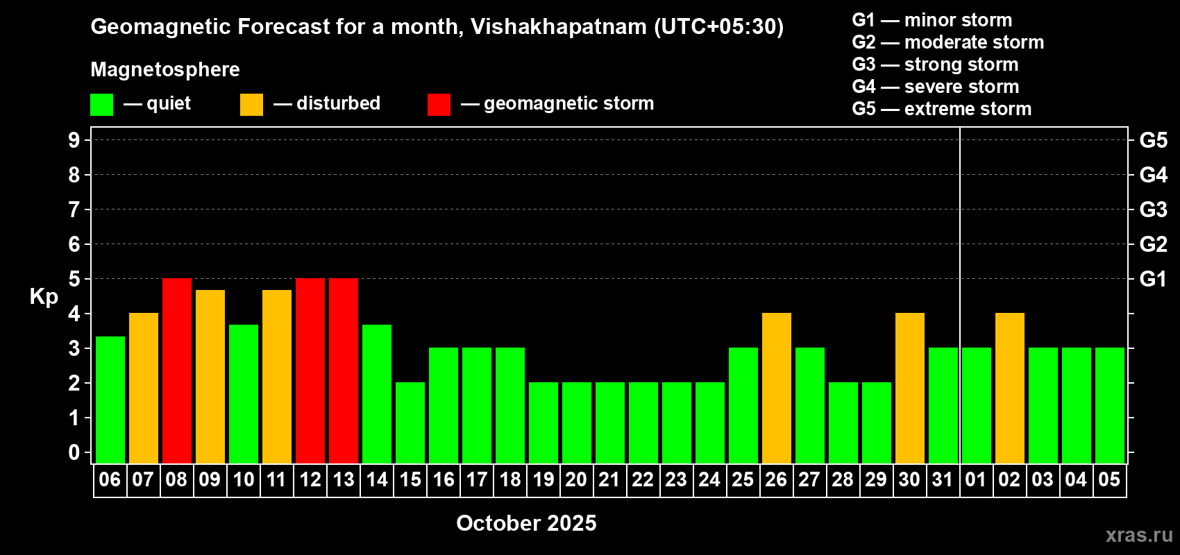 Geomagnetic storm forecast in Vishakhapatnam for Oct 06, 2025