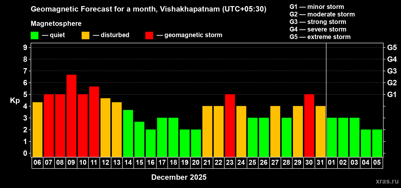 Geomagnetic storm forecast in Vishakhapatnam for Dec 06, 2025