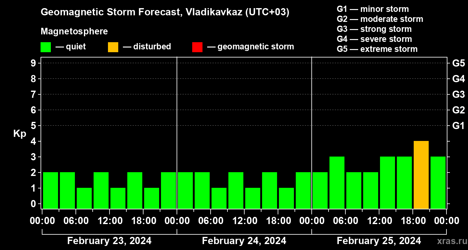 Geomagnetic storm forecast in Vladikavkaz for Feb 23, 2024