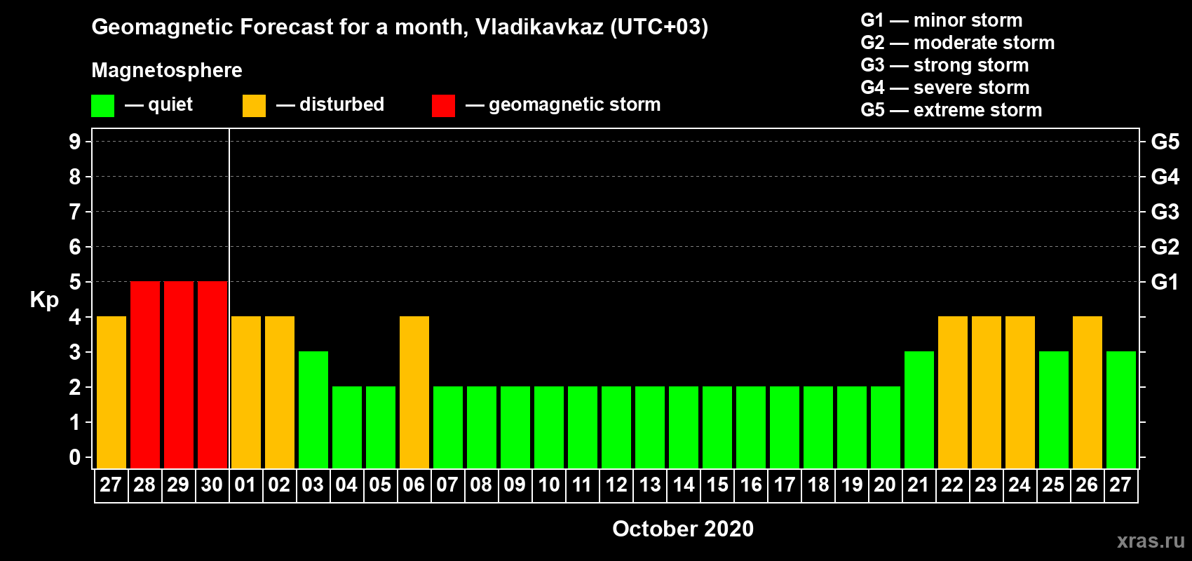 Geomagnetic activity forecast in Vladikavkaz — Sep 27, 2020