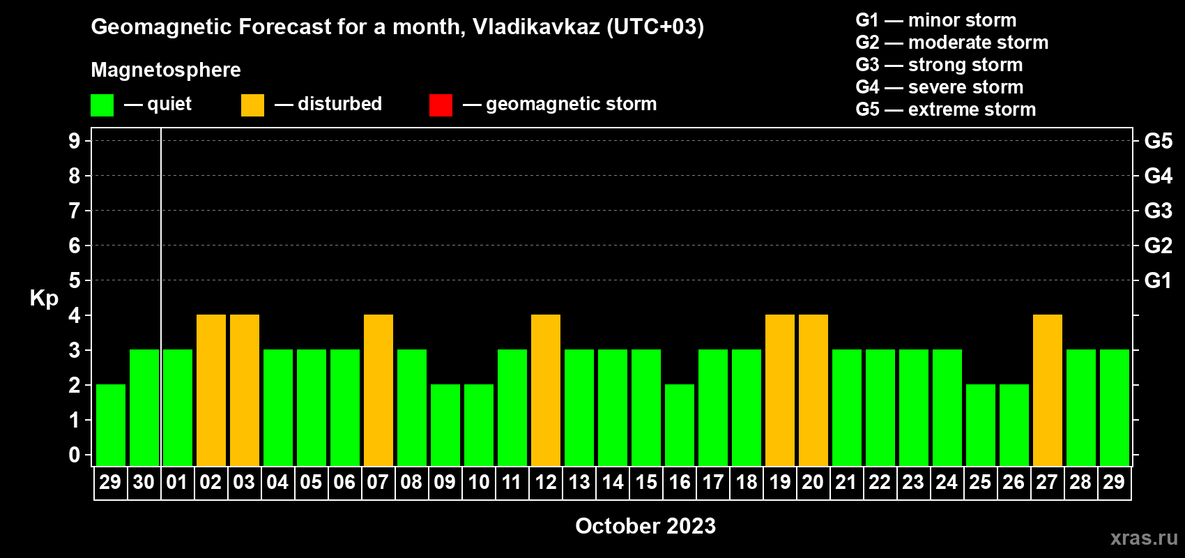 Geomagnetic storm forecast in Vladikavkaz for Sep 29, 2023