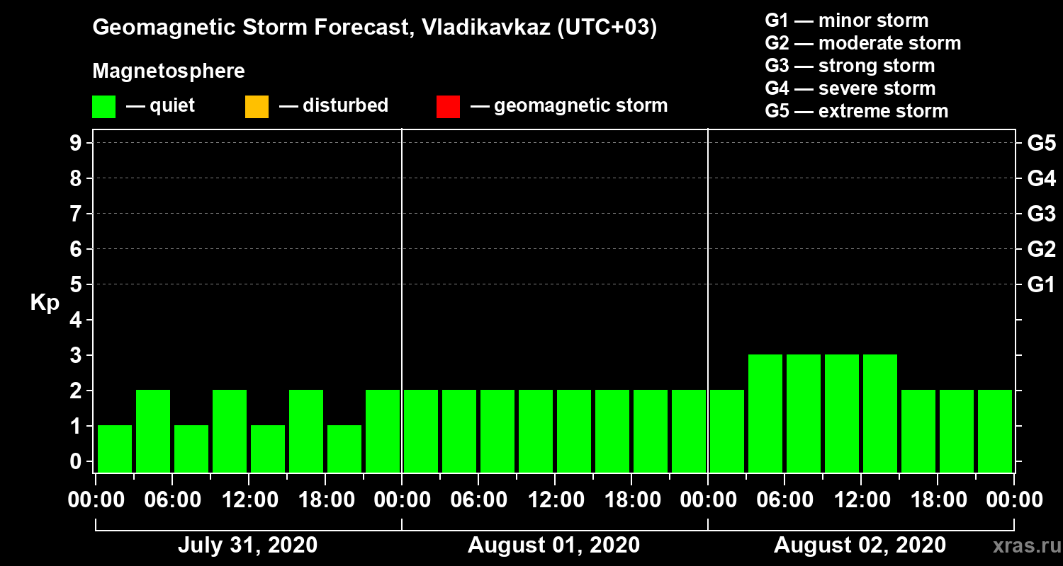 Geomagnetic activity forecast in Vladikavkaz — Jul 31, 2020