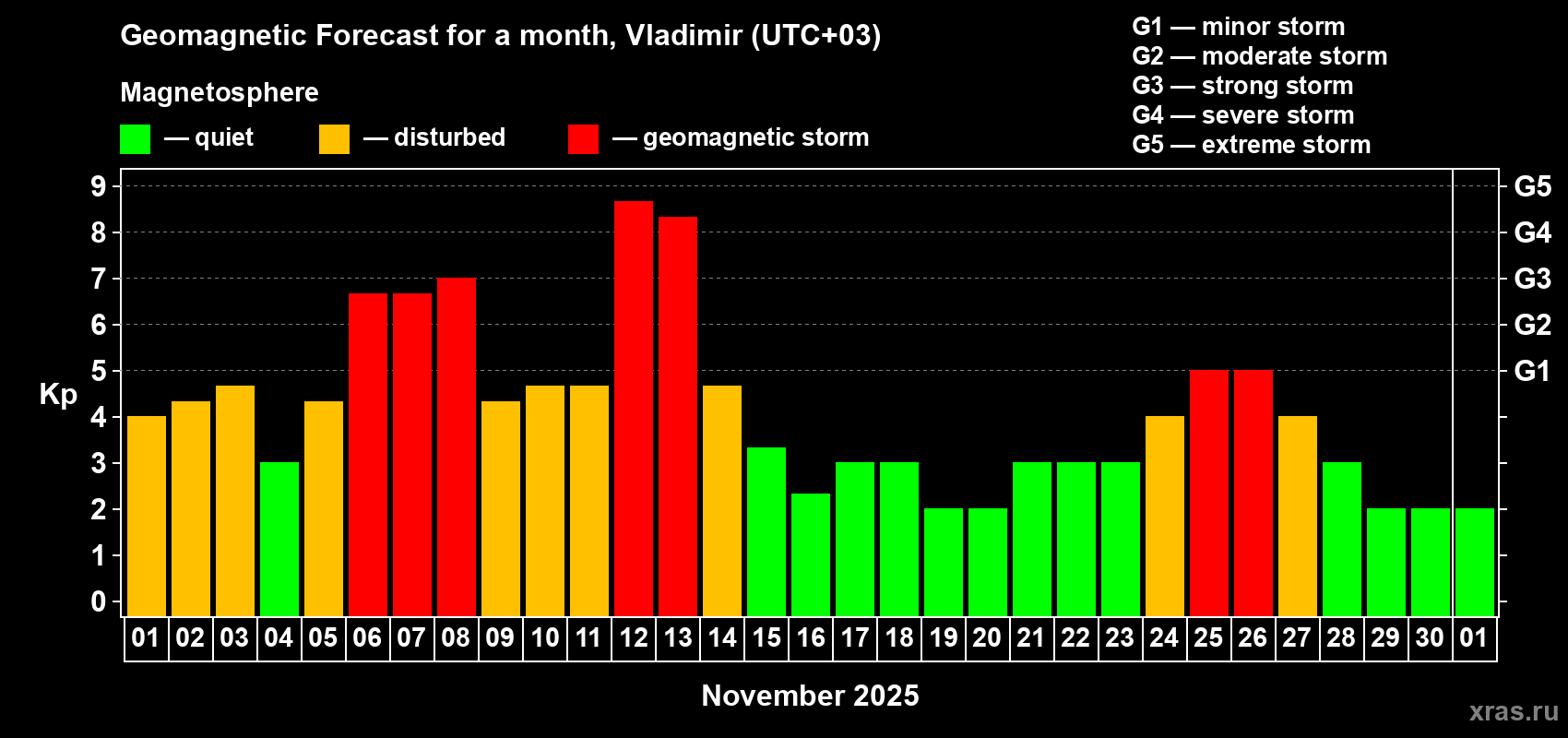 Geomagnetic storm forecast in Vladimir for Nov 01, 2025