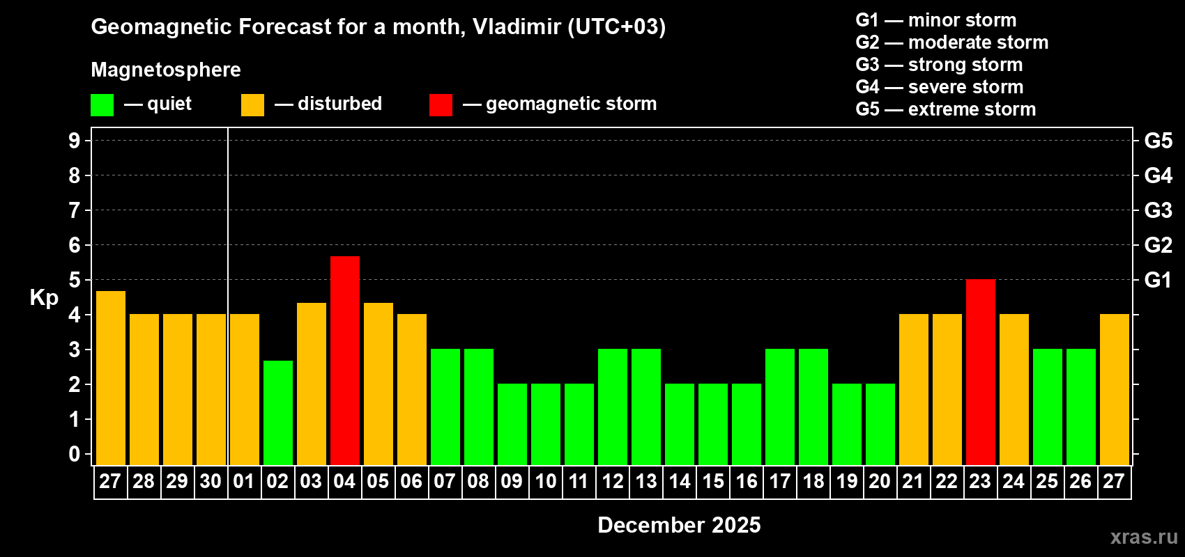 Geomagnetic storm forecast in Vladimir for Nov 27, 2025