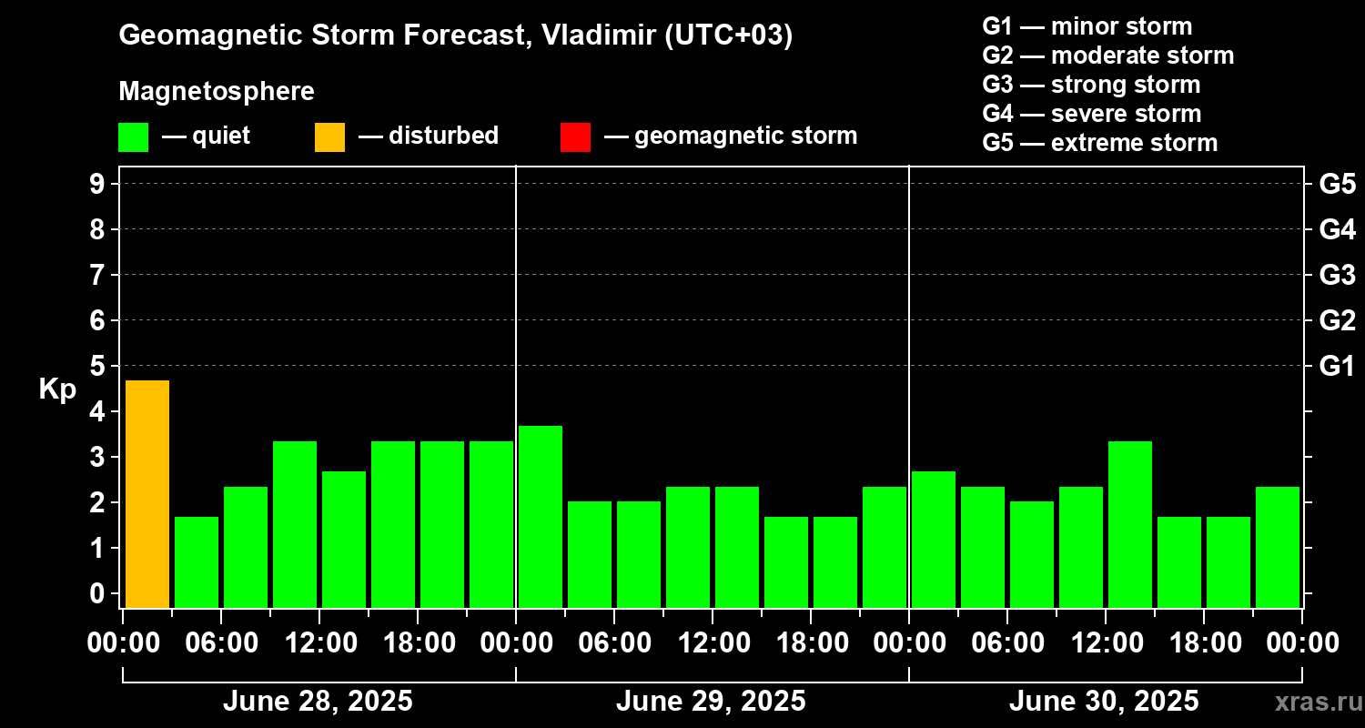 Geomagnetic storm forecast in Vladimir for Jun 28, 2025