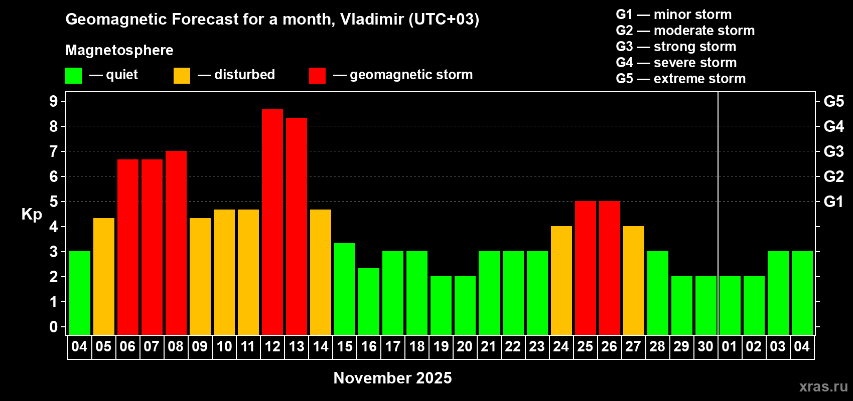 Geomagnetic storm forecast in Vladimir for Nov 04, 2025