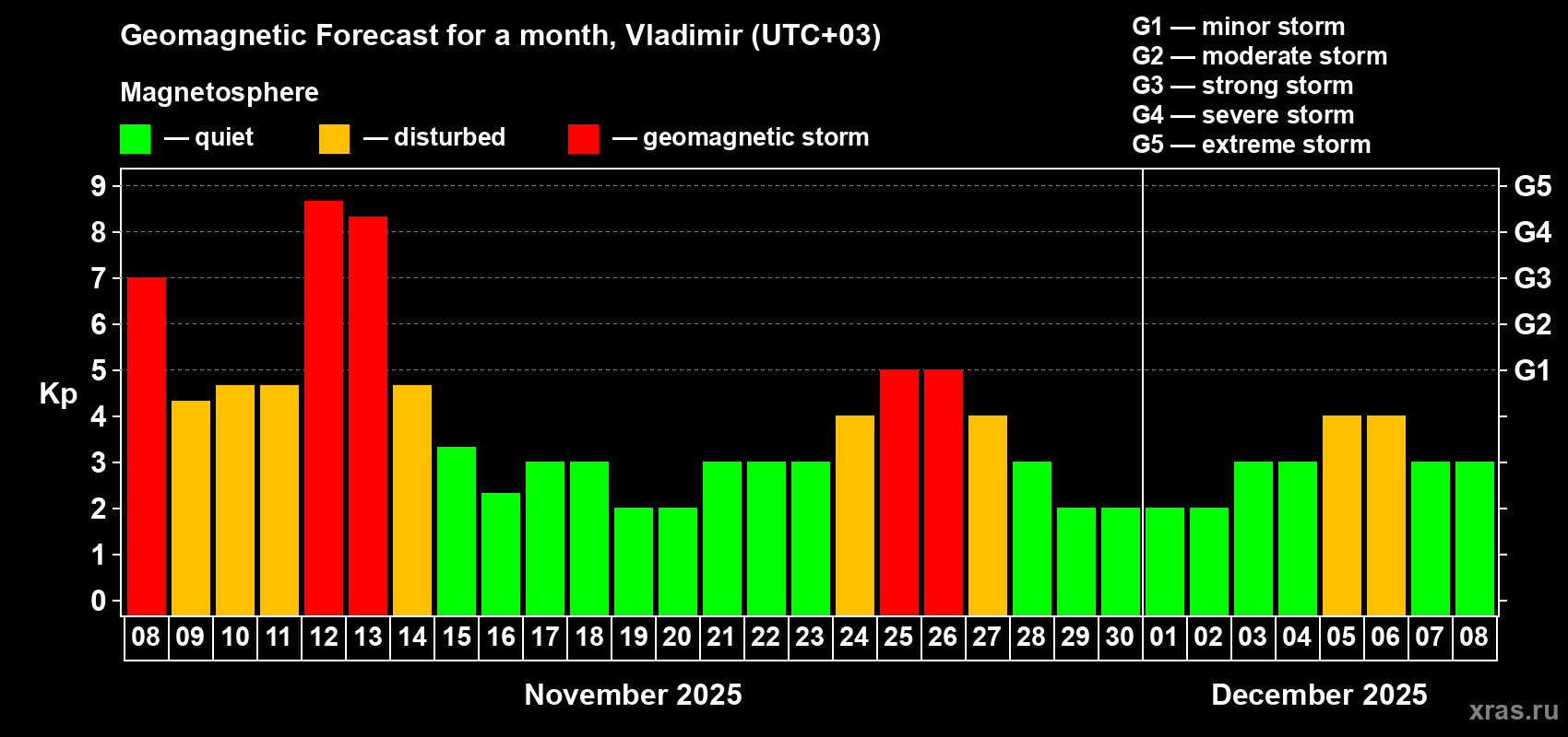 Geomagnetic storm forecast in Vladimir for Nov 08, 2025
