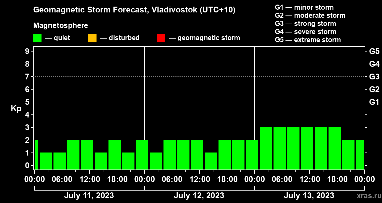 Geomagnetic activity forecast in Vladivostok — Jul 11, 2023