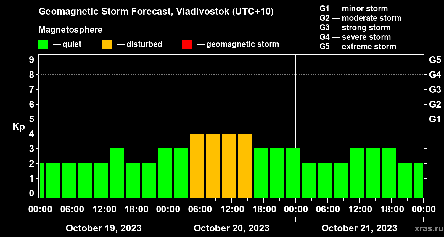 Geomagnetic activity forecast in Vladivostok — Oct 19, 2023