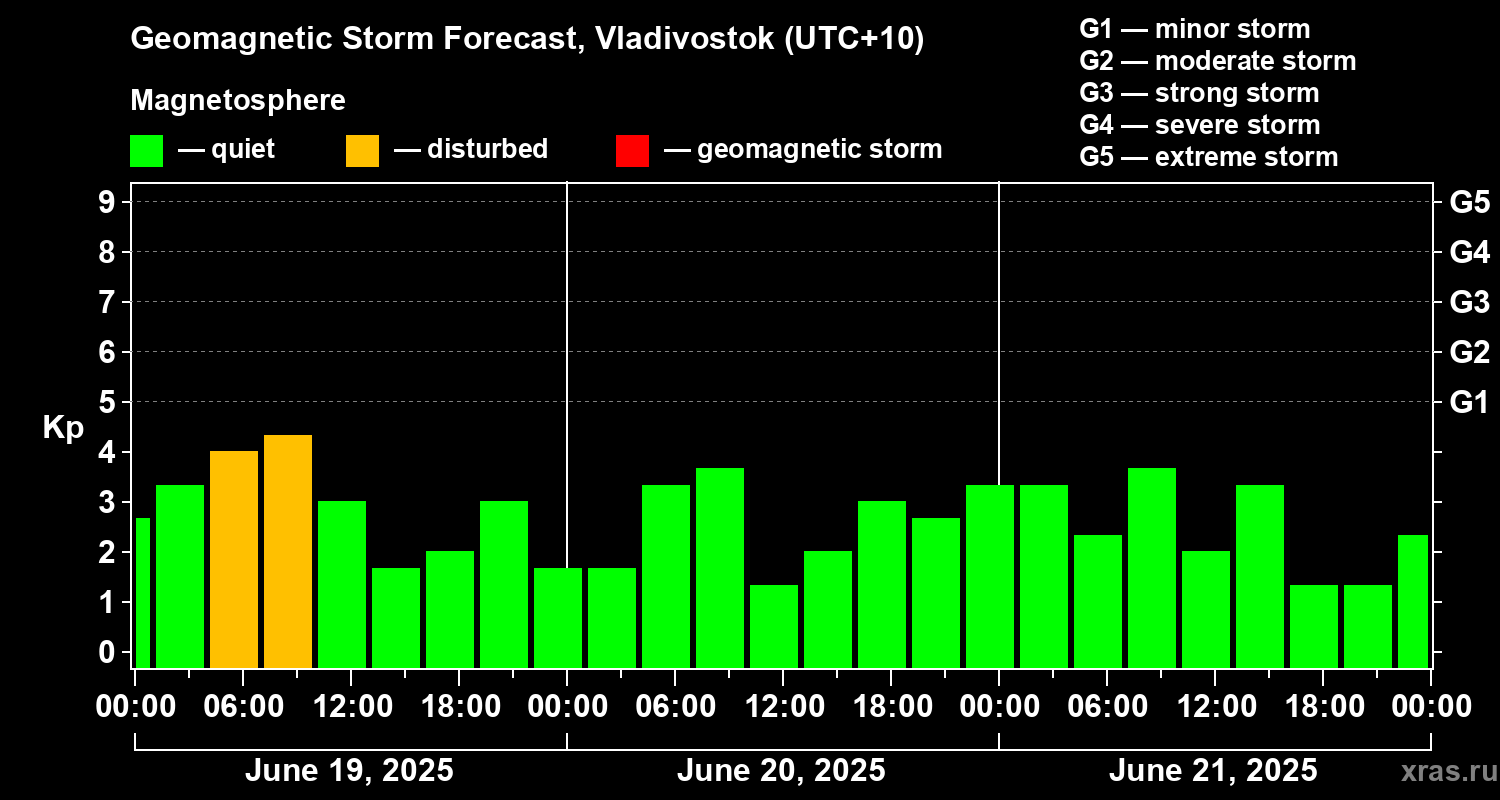 Geomagnetic activity forecast in Vladivostok — Jun 19, 2025
