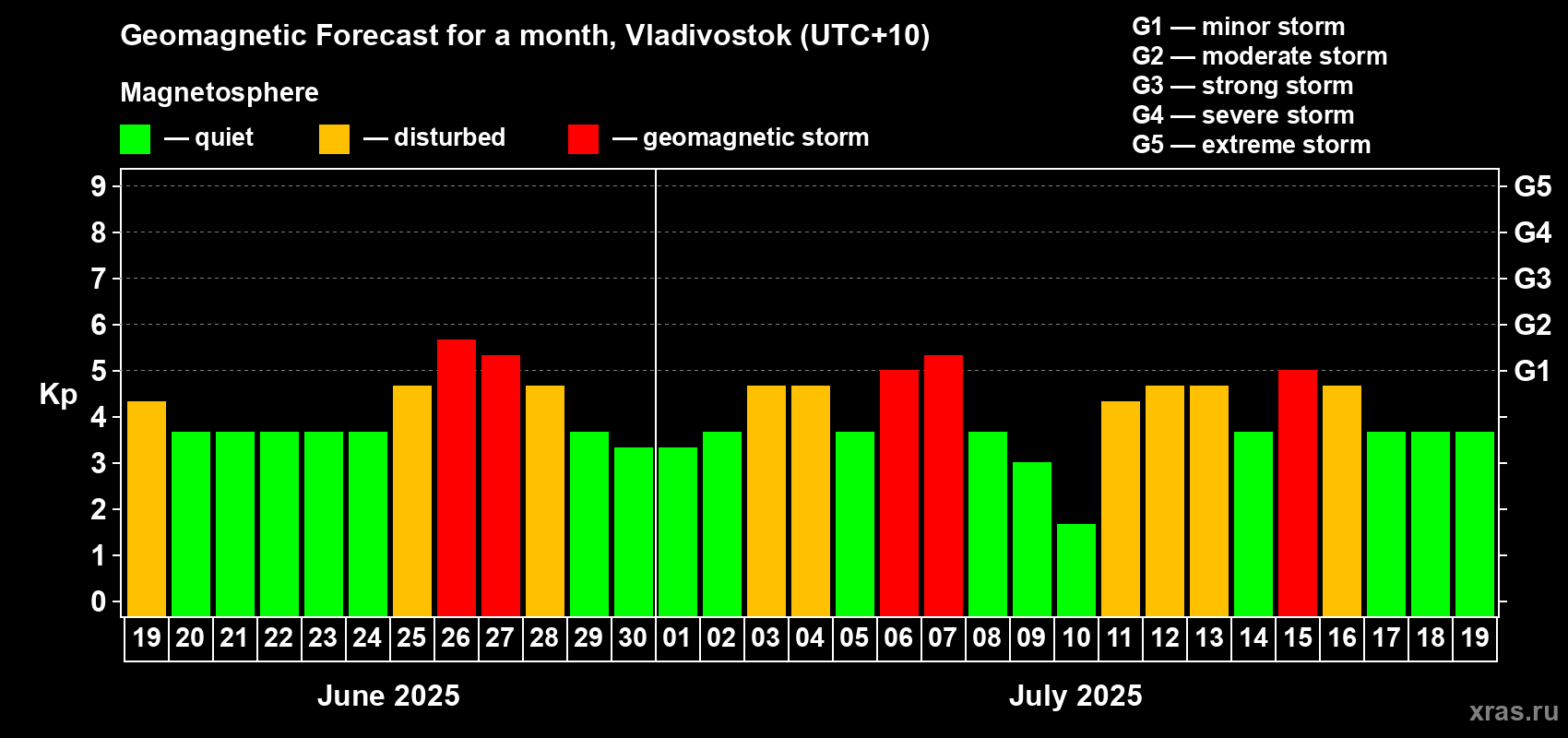 Geomagnetic storm forecast in Vladivostok for Jun 19, 2025