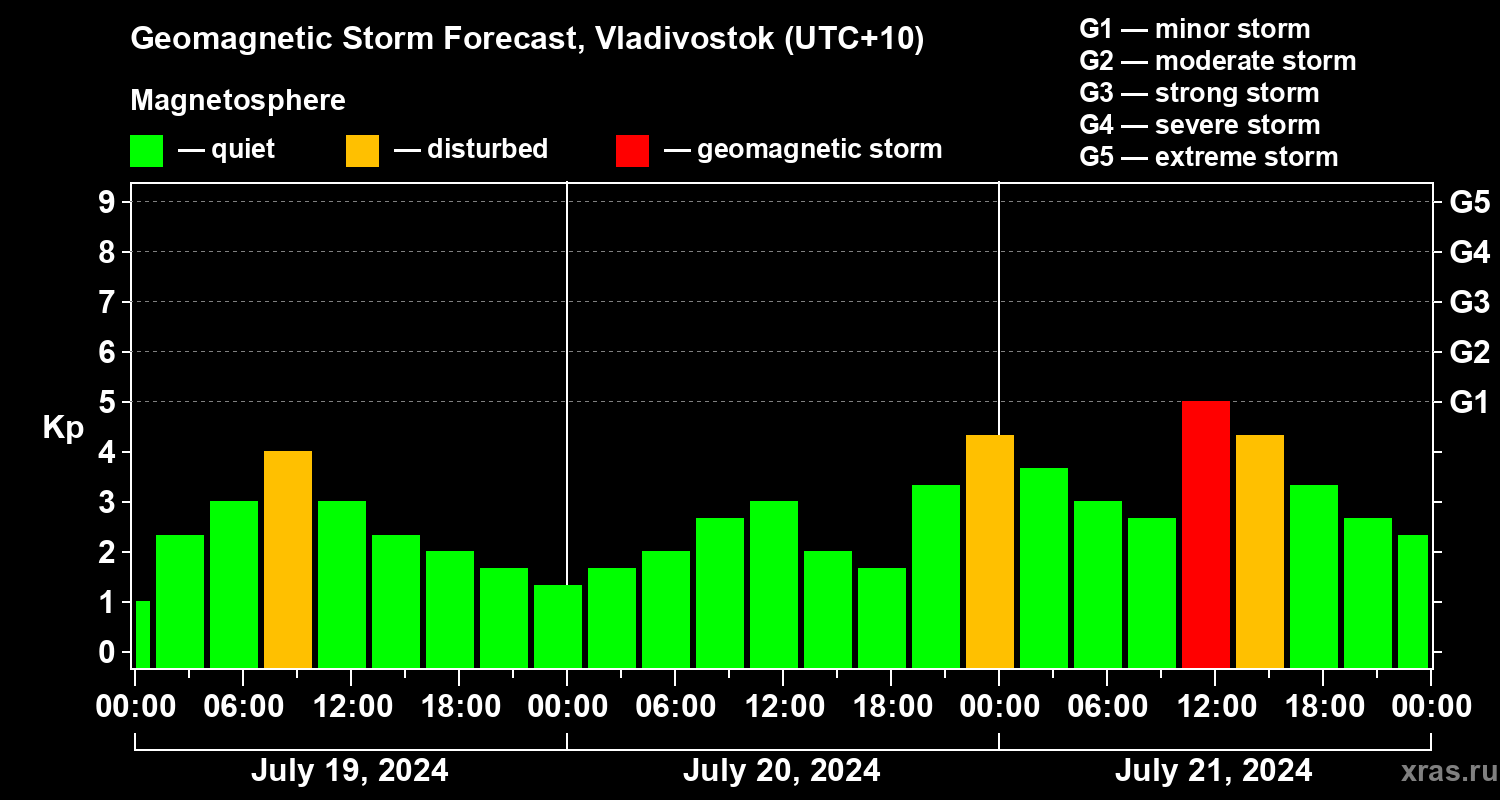 Geomagnetic activity forecast in Vladivostok — Jul 19, 2024