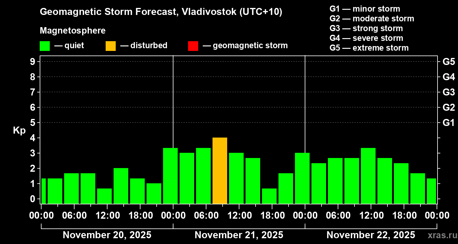 Geomagnetic storm forecast in Vladivostok for Nov 20, 2025