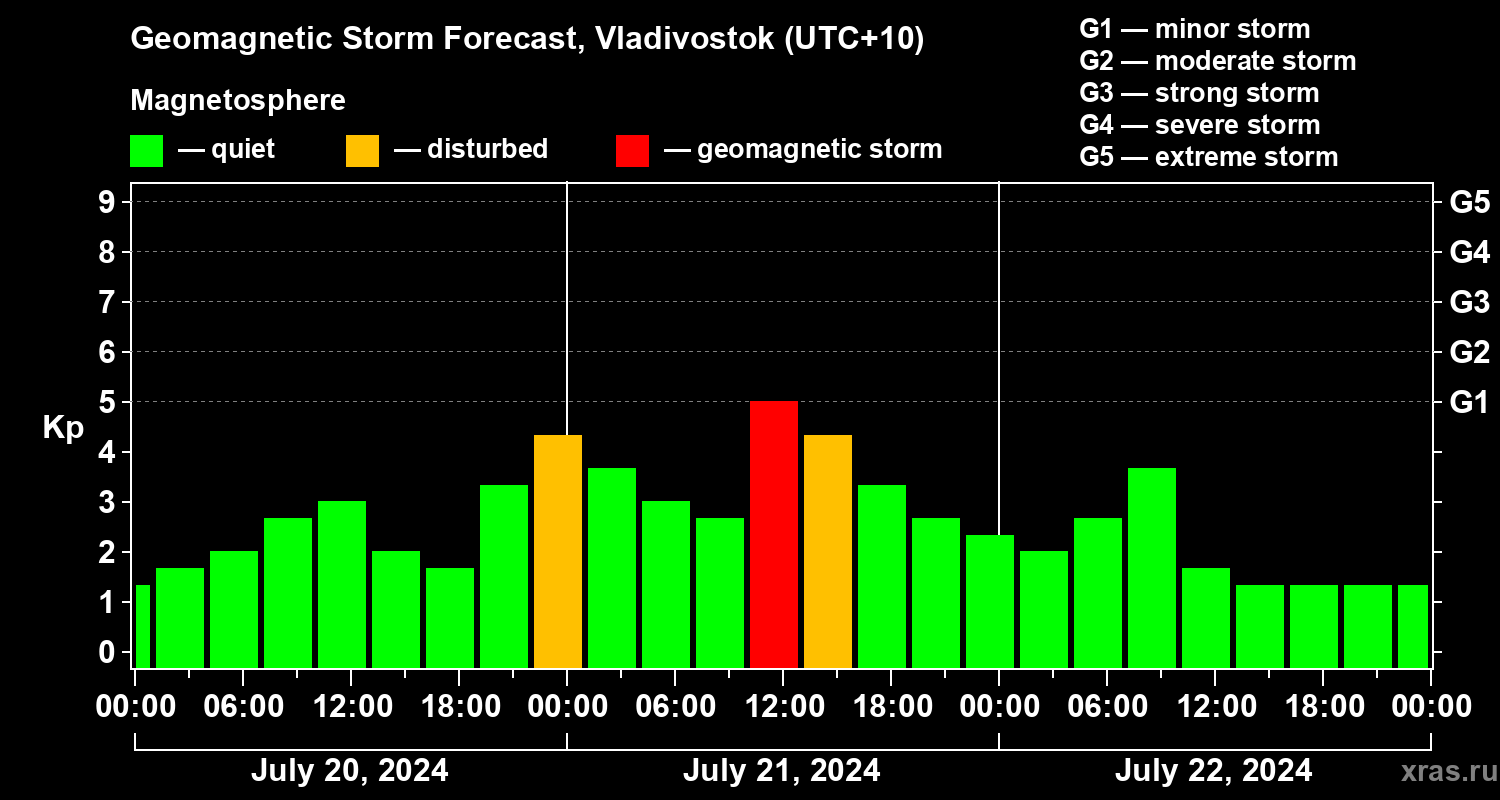 Geomagnetic activity forecast in Vladivostok — Jul 20, 2024