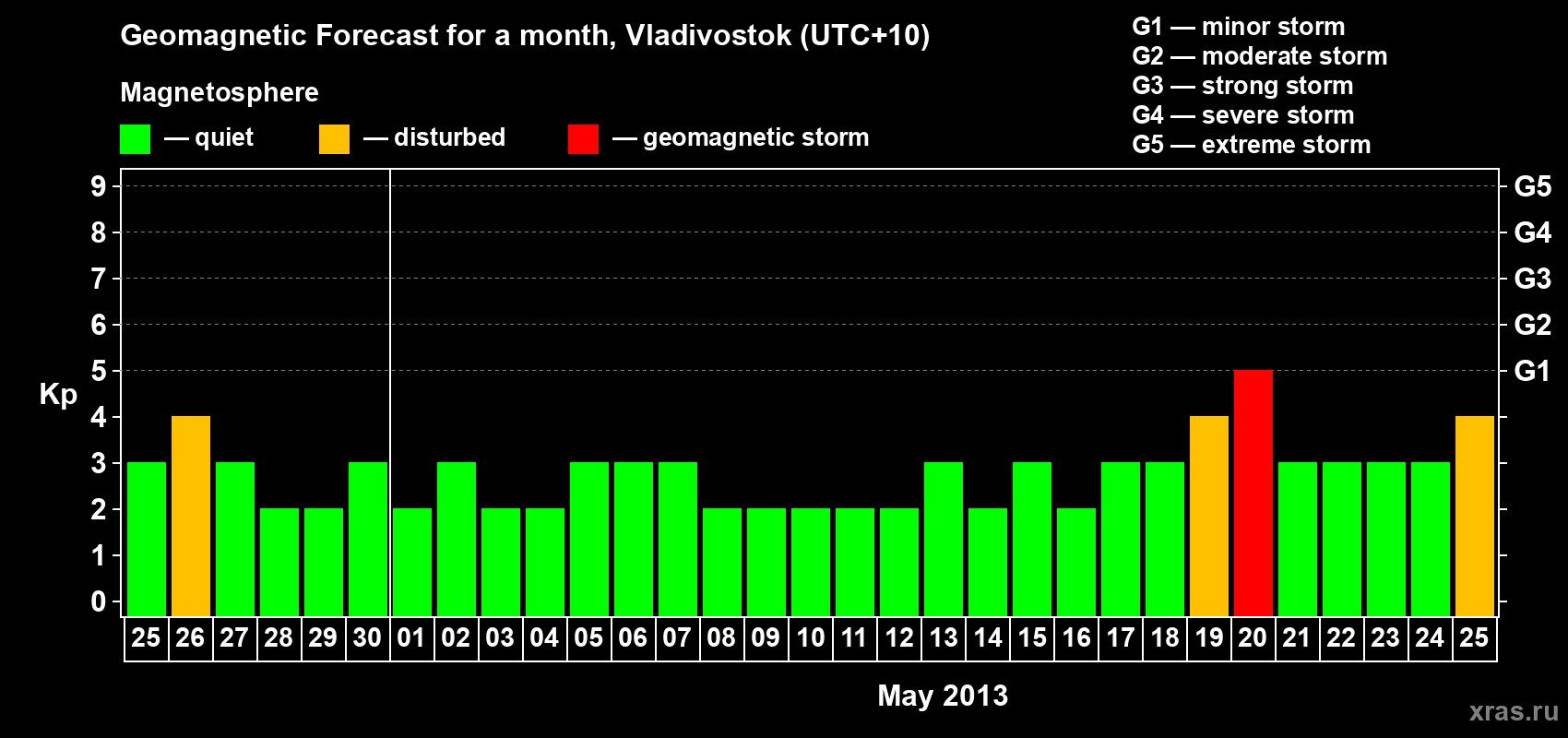 Geomagnetic storm forecast in Vladivostok for Apr 25, 2013