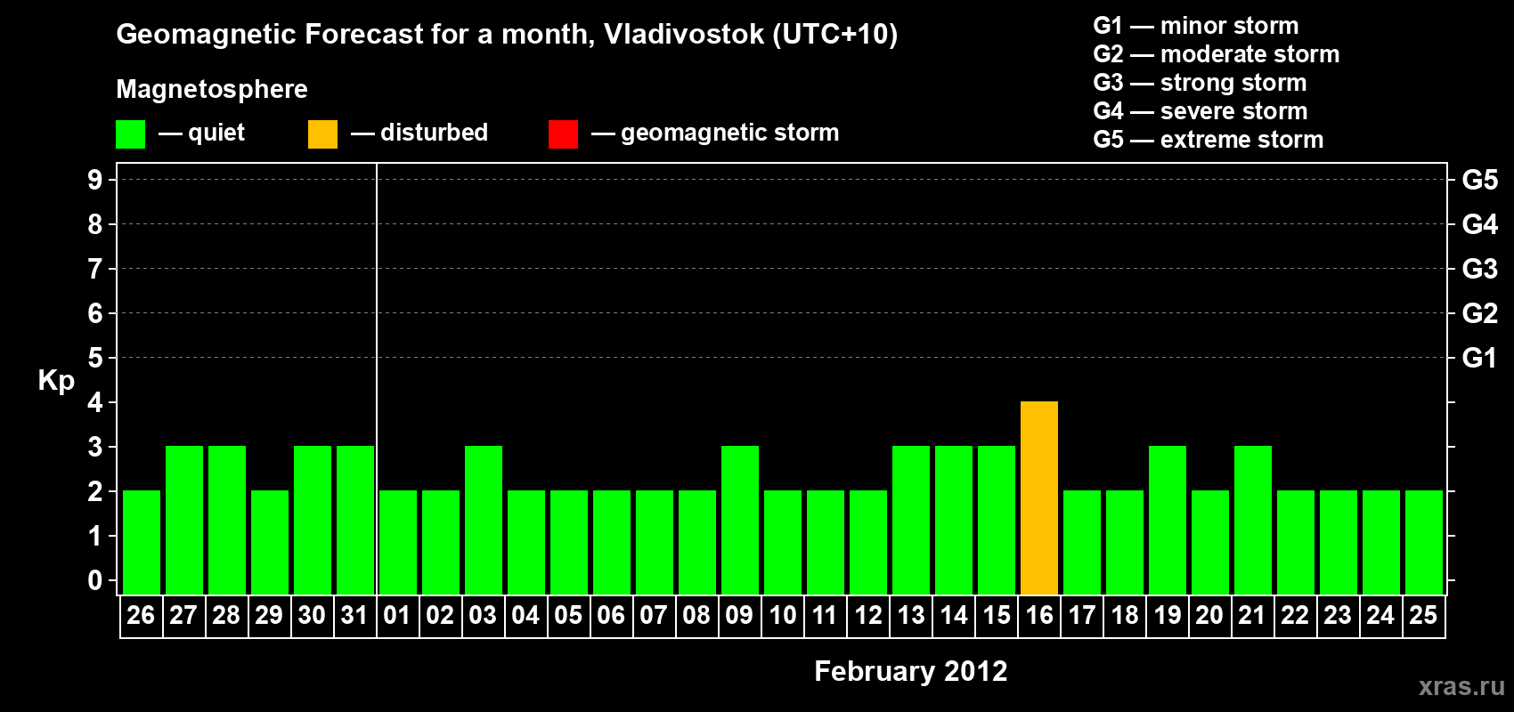 Geomagnetic storm forecast in Vladivostok for Jan 26, 2012