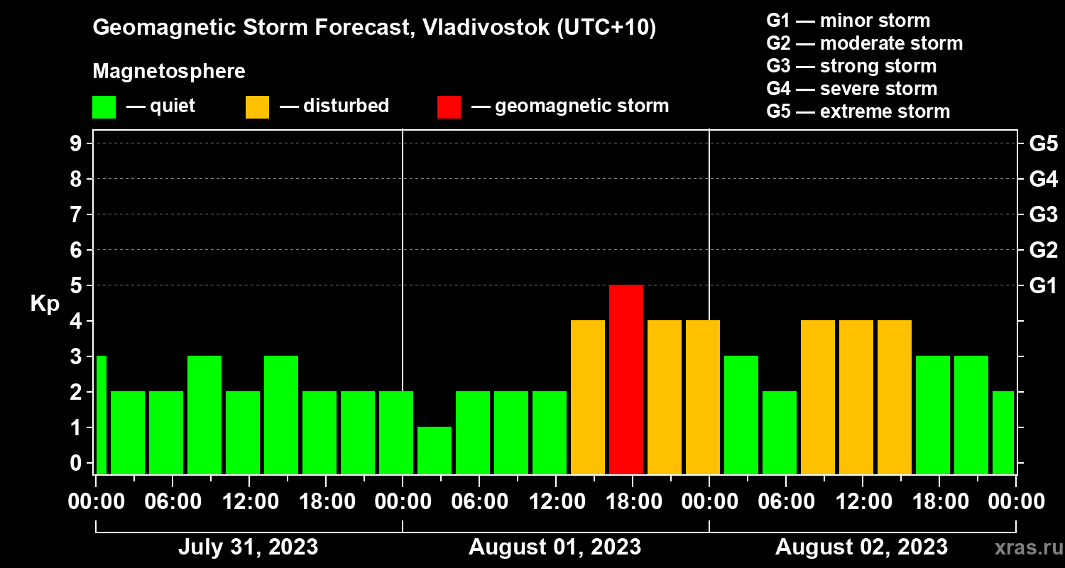 Geomagnetic activity forecast in Vladivostok — Jul 31, 2023