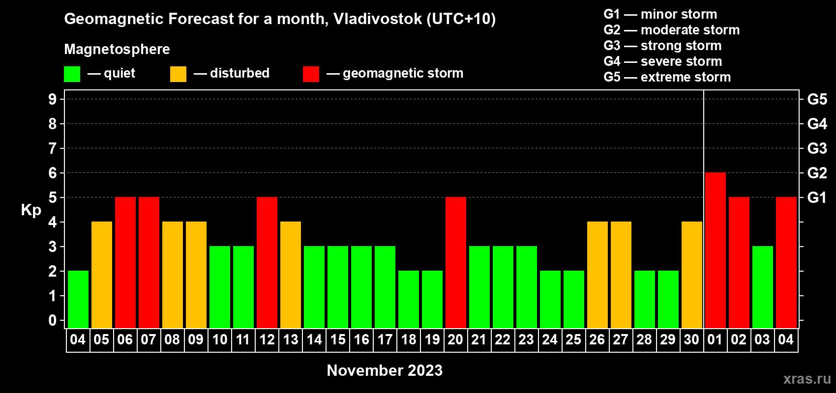 Geomagnetic activity forecast in Vladivostok — Nov 04, 2023
