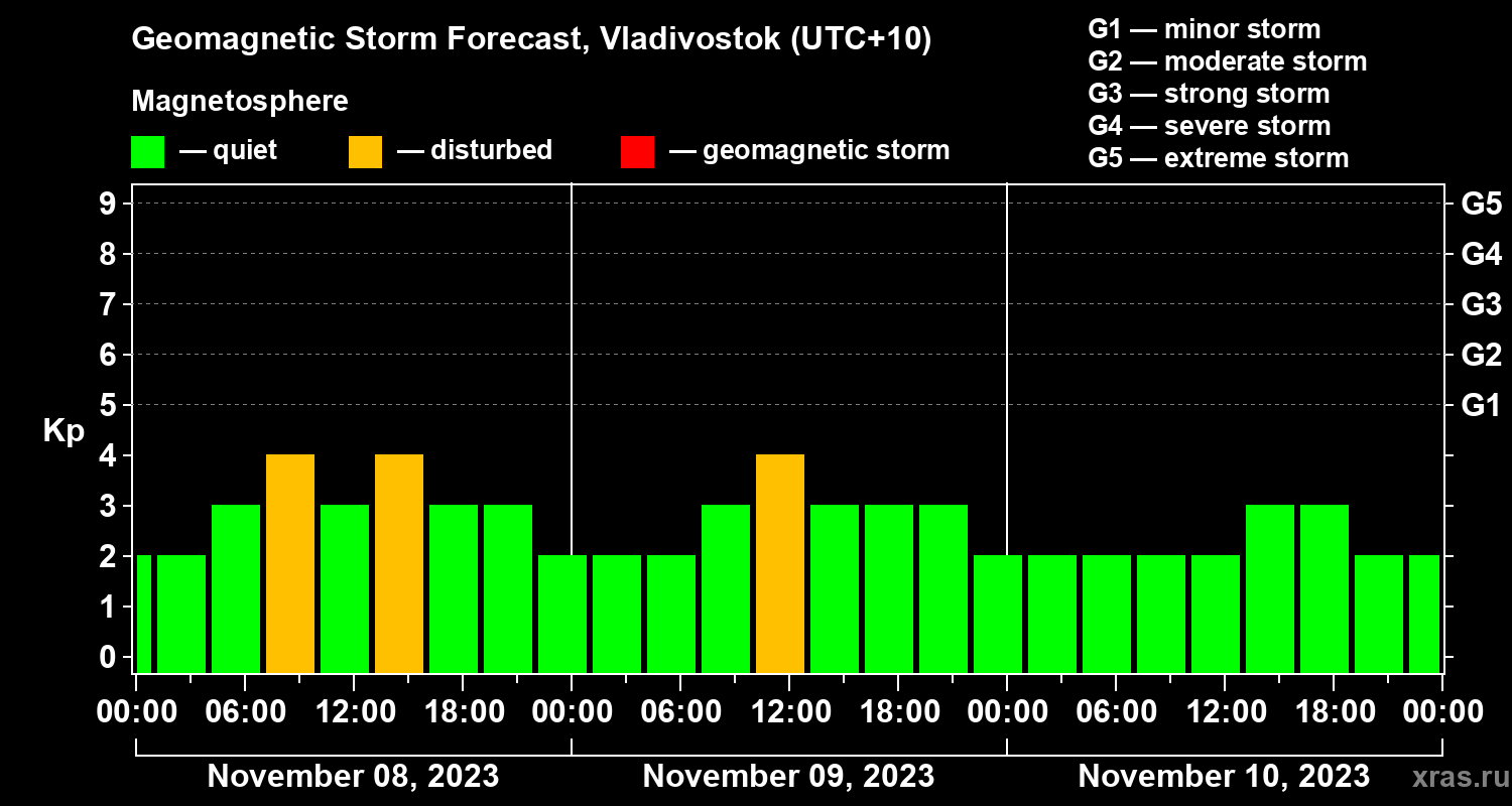 Geomagnetic activity forecast in Vladivostok — Nov 08, 2023