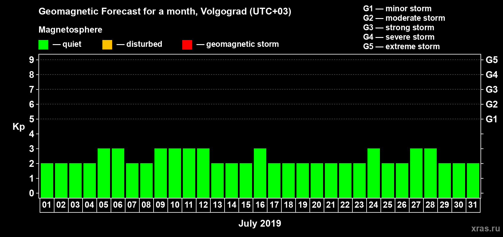 Geomagnetic storm forecast in Volgograd for Jul 01, 2019
