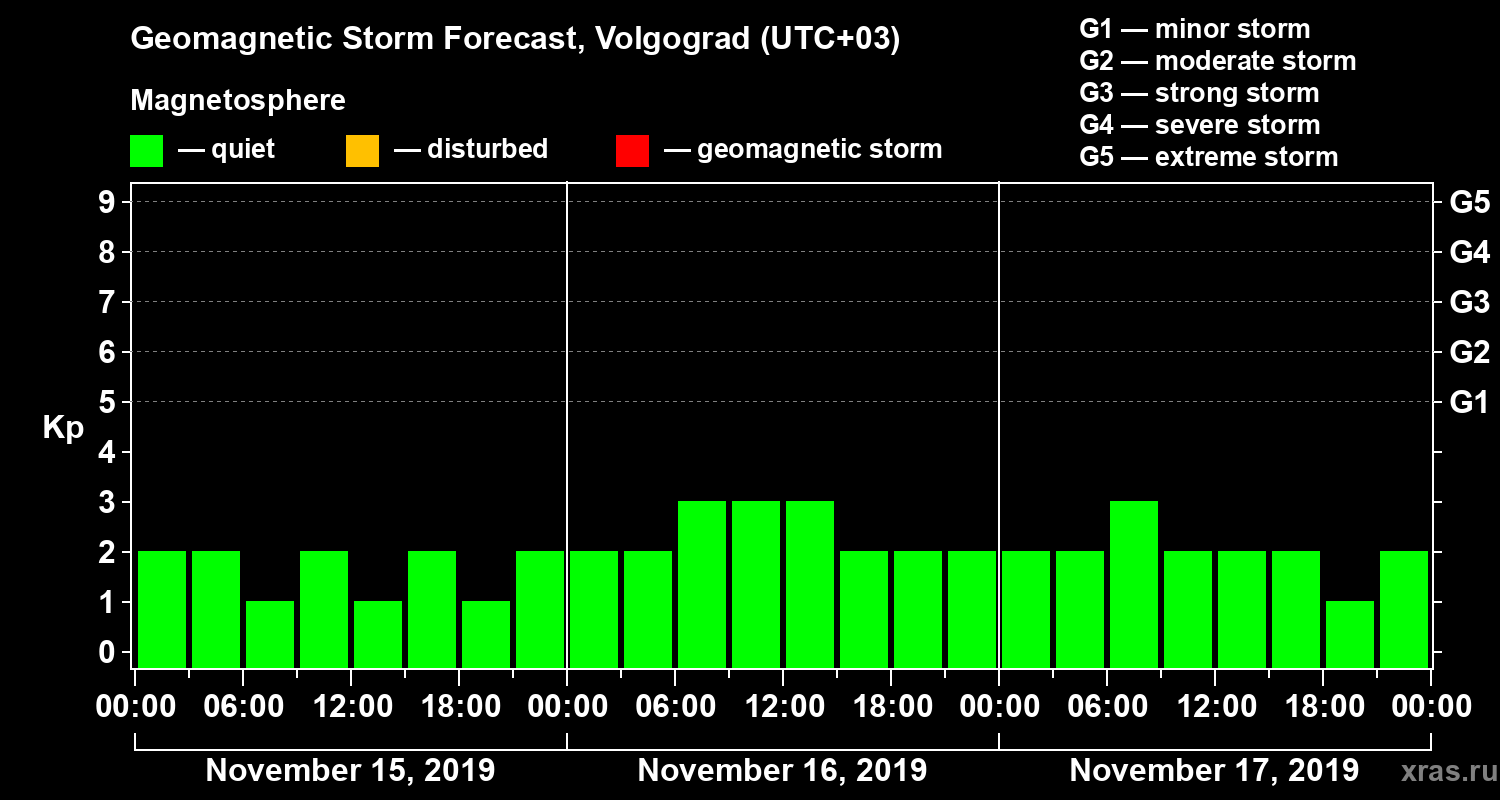 Geomagnetic activity forecast in Volgograd — Nov 15, 2019