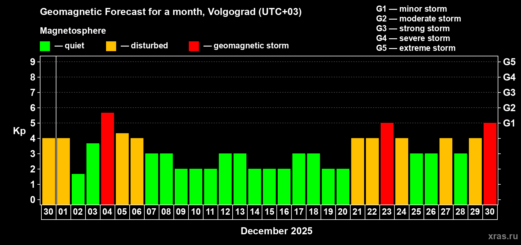 Geomagnetic storm forecast in Volgograd for Nov 30, 2025