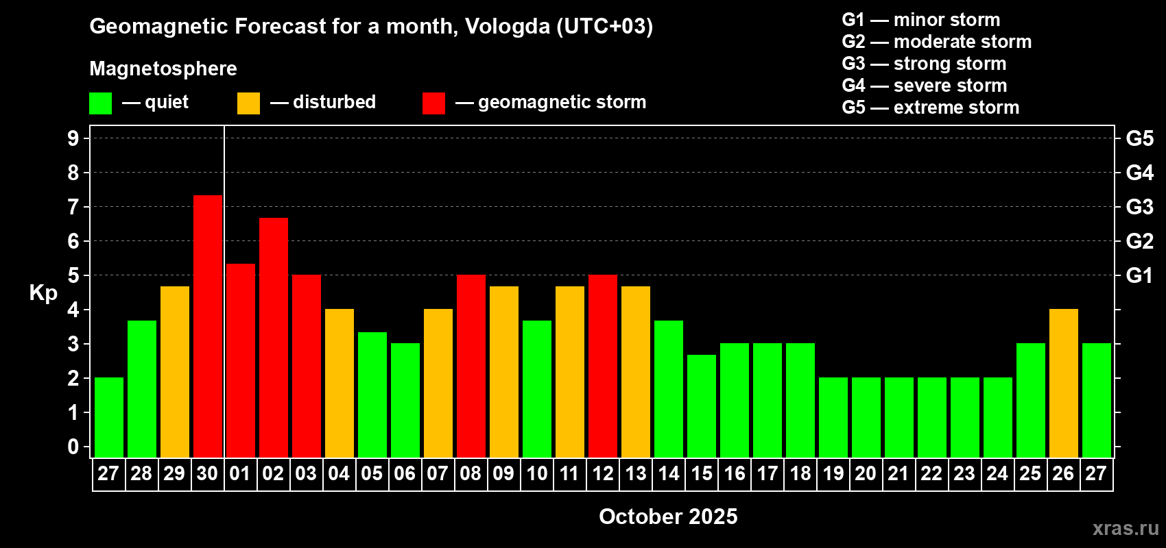 Geomagnetic storm forecast in Vologda for Sep 27, 2025