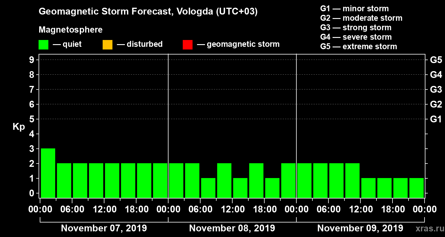 Geomagnetic activity forecast in Vologda — Nov 07, 2019