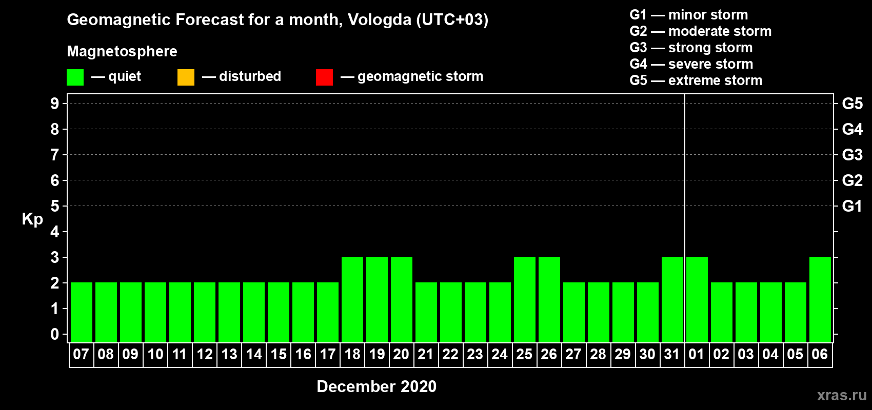 Geomagnetic storm forecast in Vologda for Dec 07, 2019