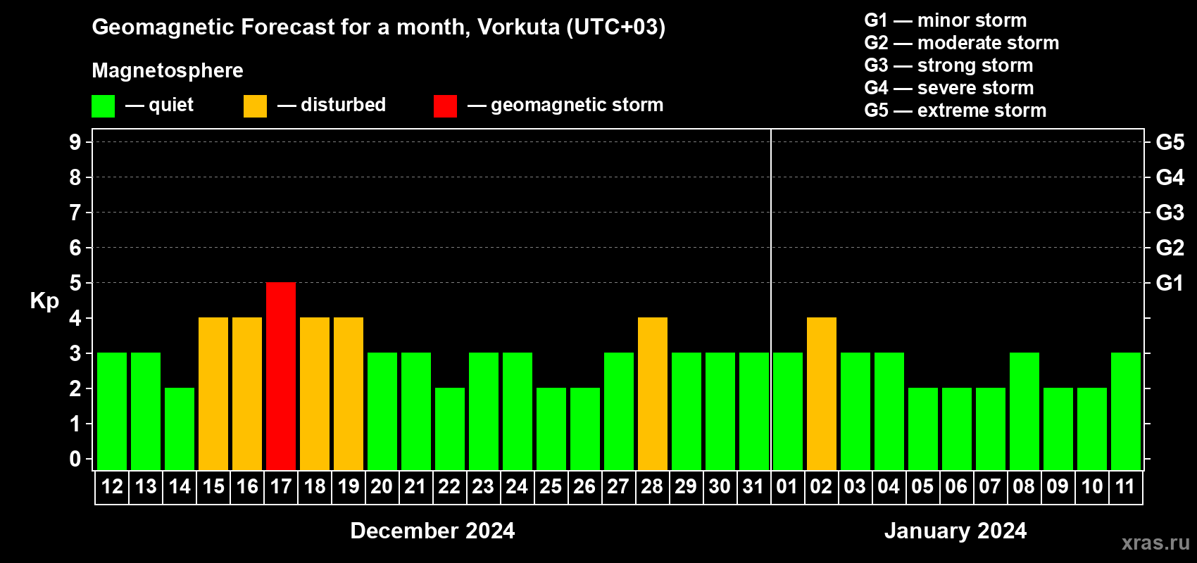Geomagnetic activity forecast in Vorkuta — Dec 12, 2023