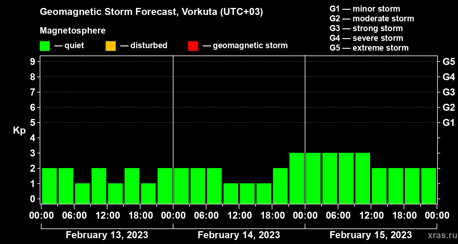 Geomagnetic activity forecast in Vorkuta — Feb 13, 2023