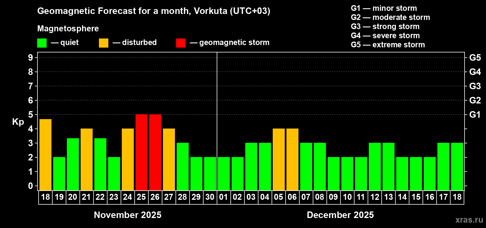 Geomagnetic storm forecast in Vorkuta for Nov 18, 2025