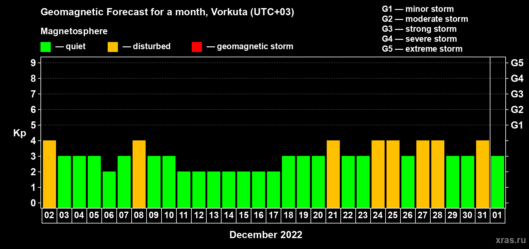 Geomagnetic storm forecast in Vorkuta for Dec 02, 2022