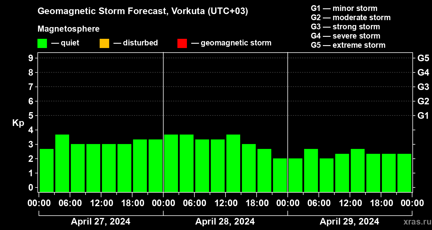 Geomagnetic storm forecast in Vorkuta for Apr 27, 2024