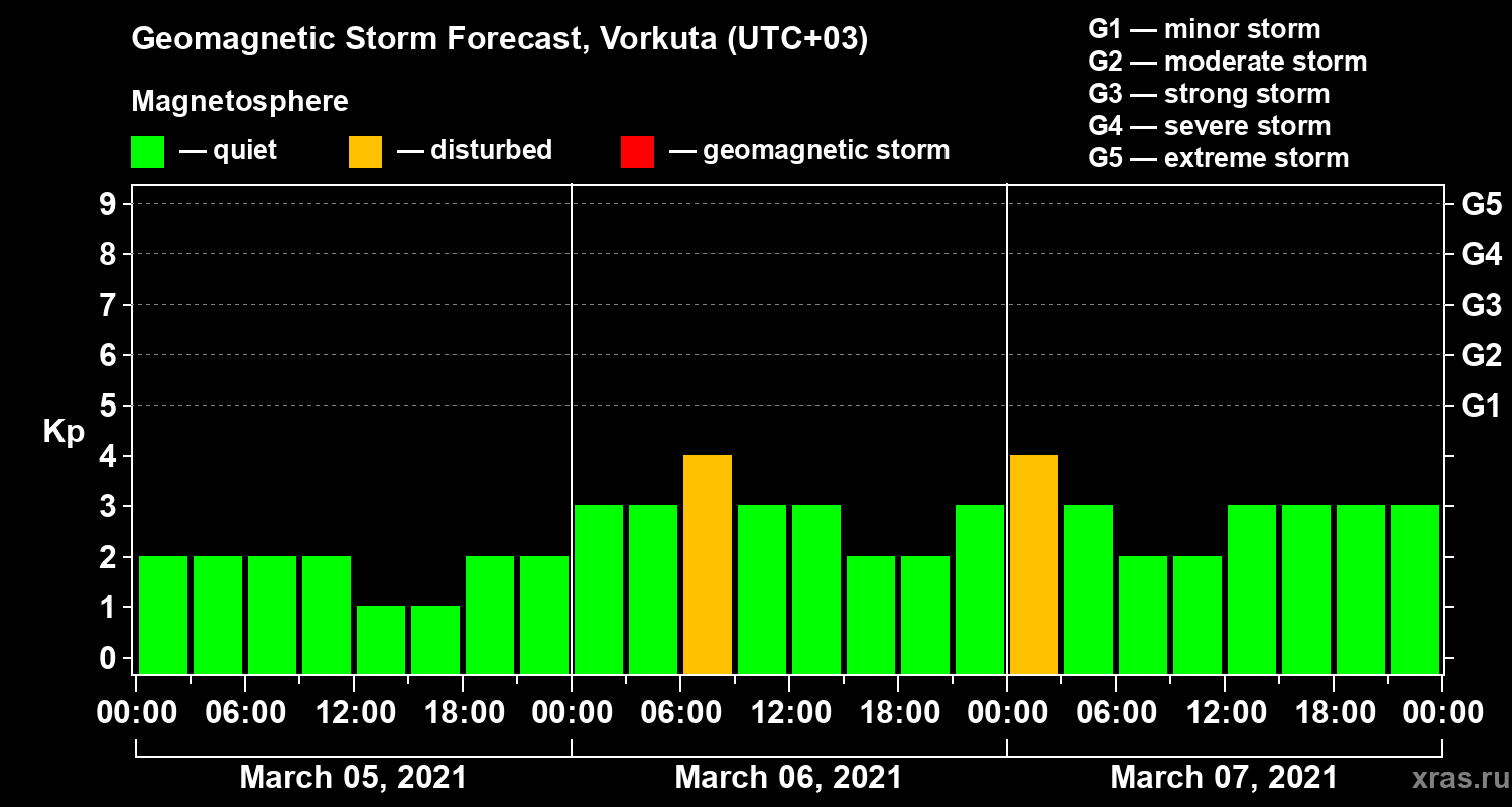 Geomagnetic activity forecast in Vorkuta — Mar 05, 2021