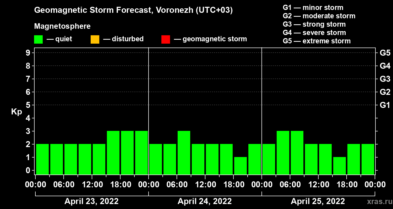 Geomagnetic storm forecast in Voronezh for Apr 23, 2022