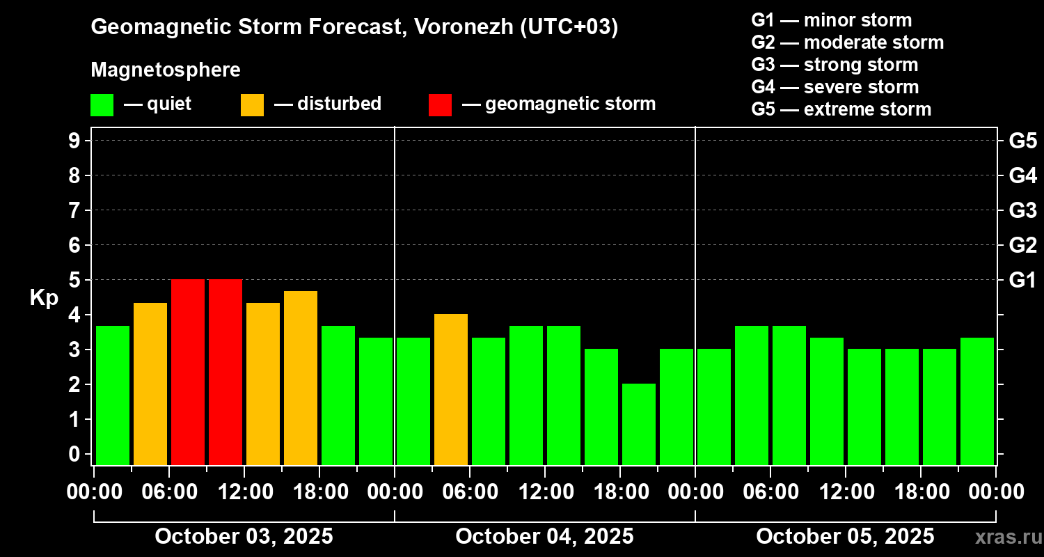 Geomagnetic storm forecast in Voronezh for Oct 03, 2025