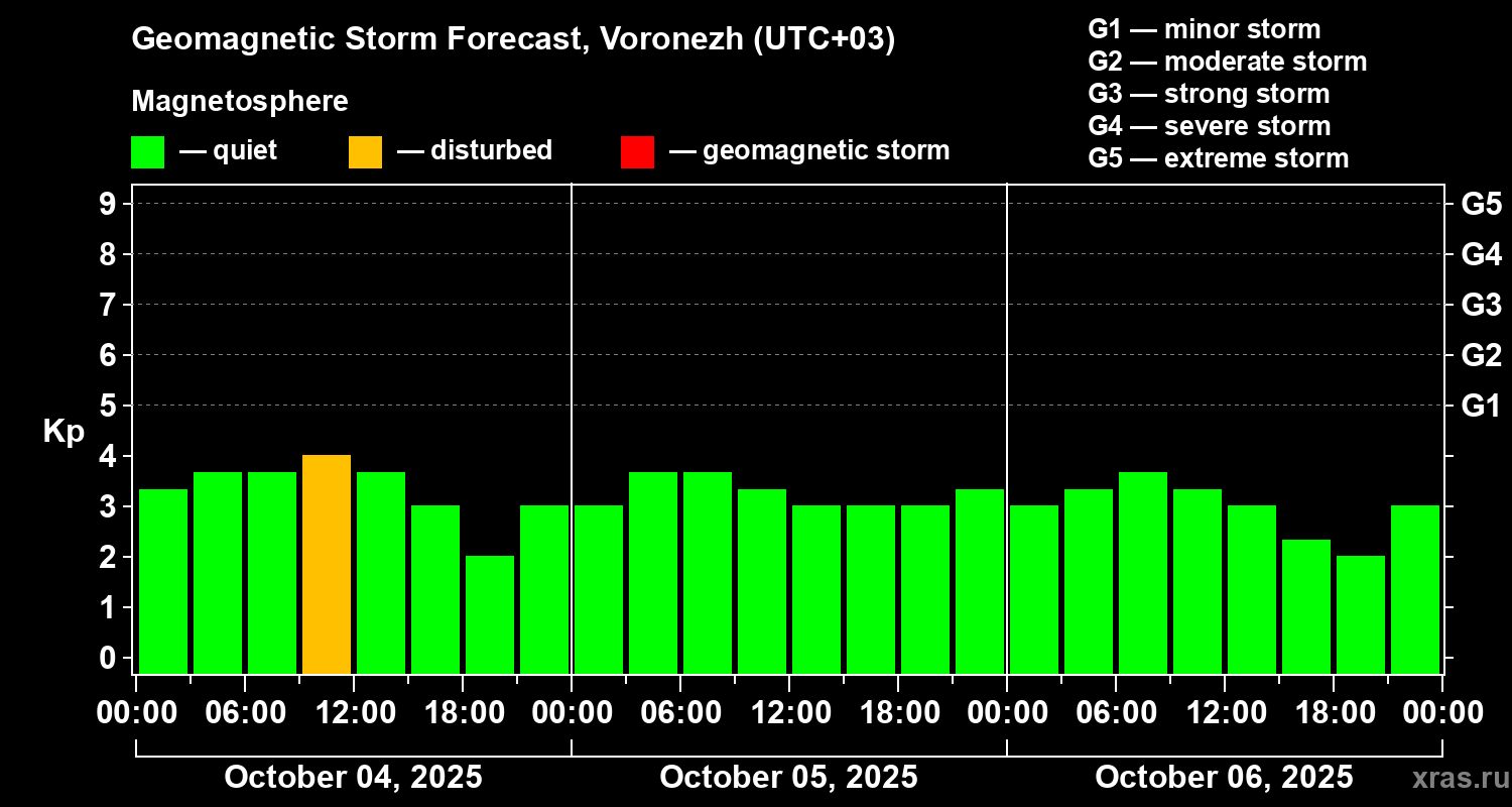 Geomagnetic storm forecast in Voronezh for Oct 04, 2025