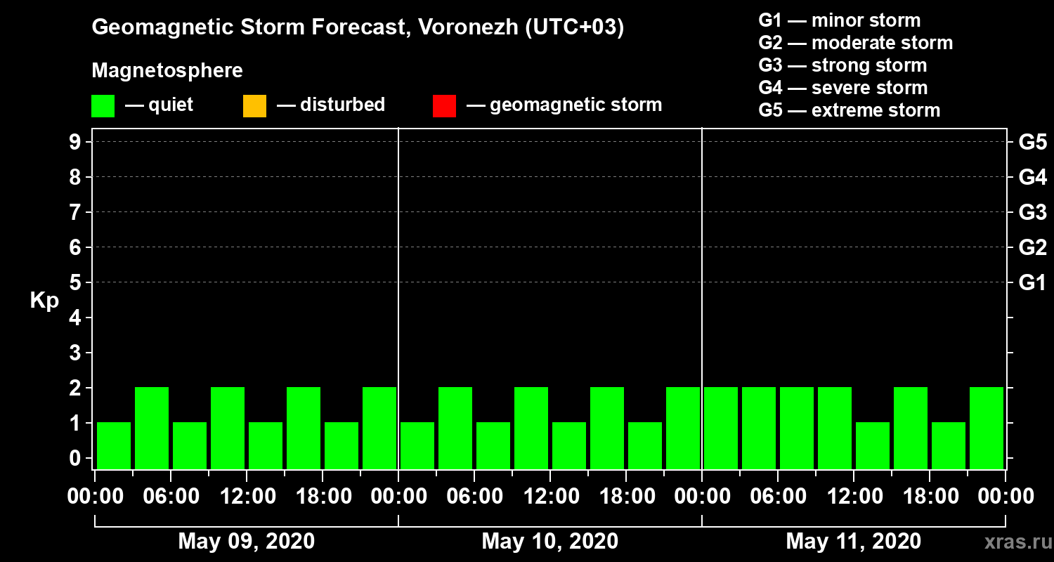 Geomagnetic activity forecast in Voronezh — May 09, 2020