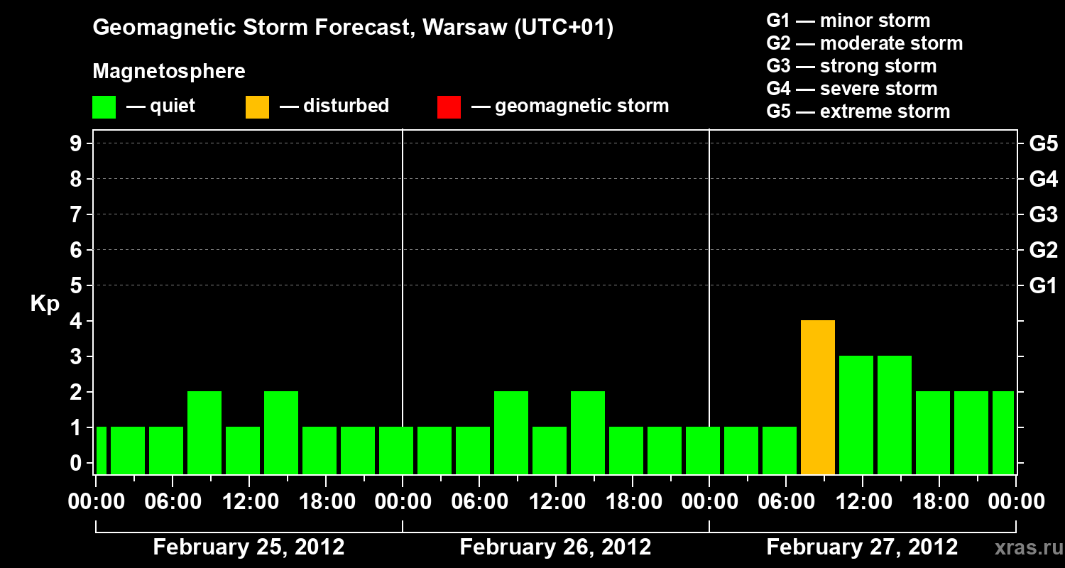 Geomagnetic storm forecast in Warsaw for Feb 25, 2012