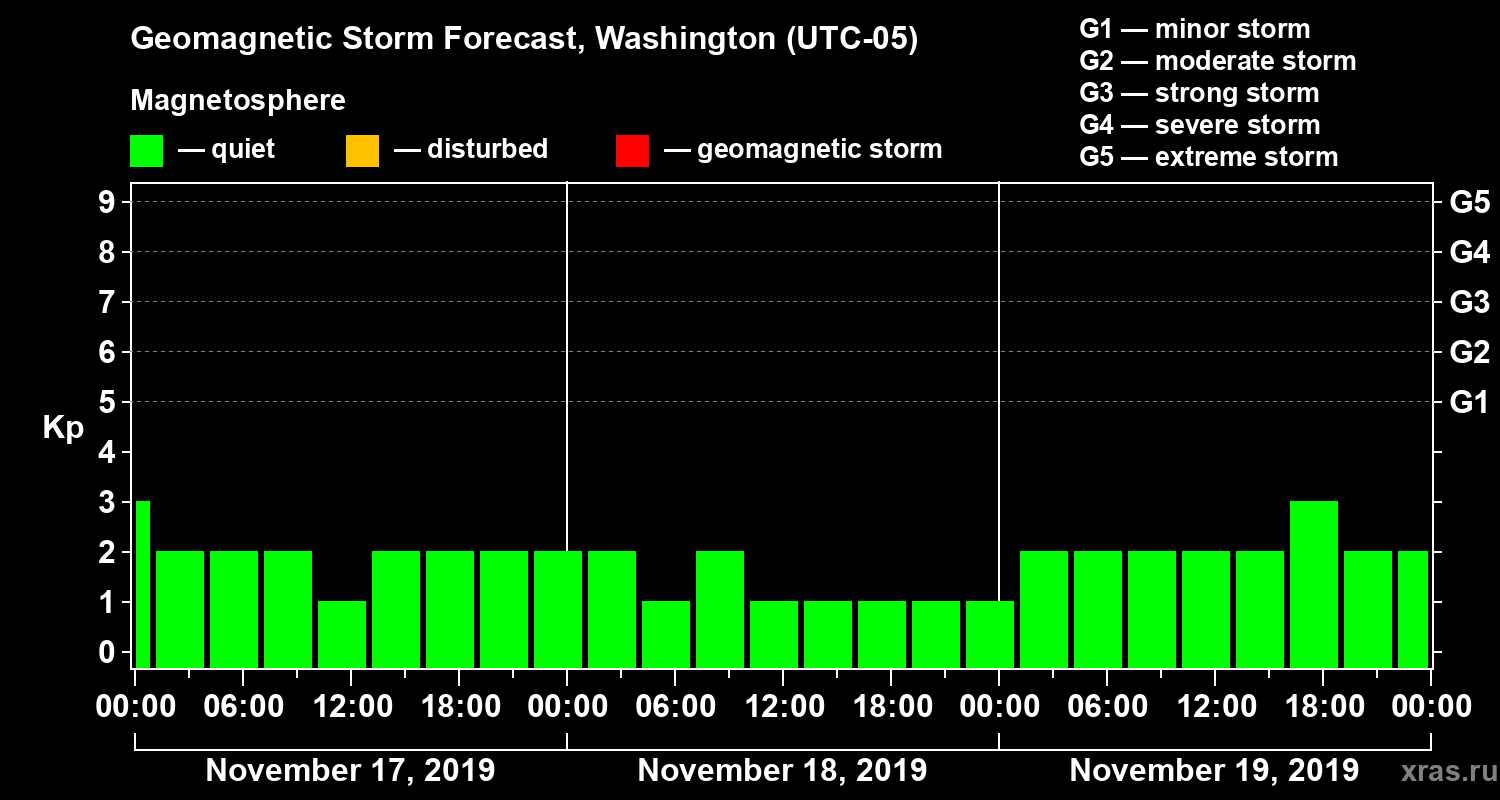 Geomagnetic storm forecast in Washington for Nov 17, 2019