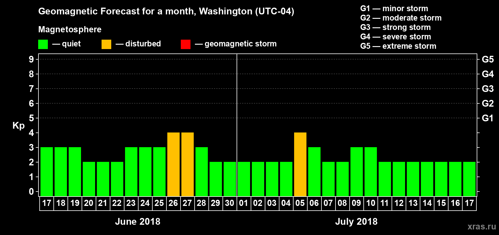 Geomagnetic storm forecast in Washington for Jun 17, 2018